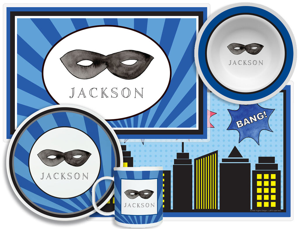 - The 10" melamine plate is in the lower left corner next to the 11 ounce mug; 8.5" bowl in the upper right corner.